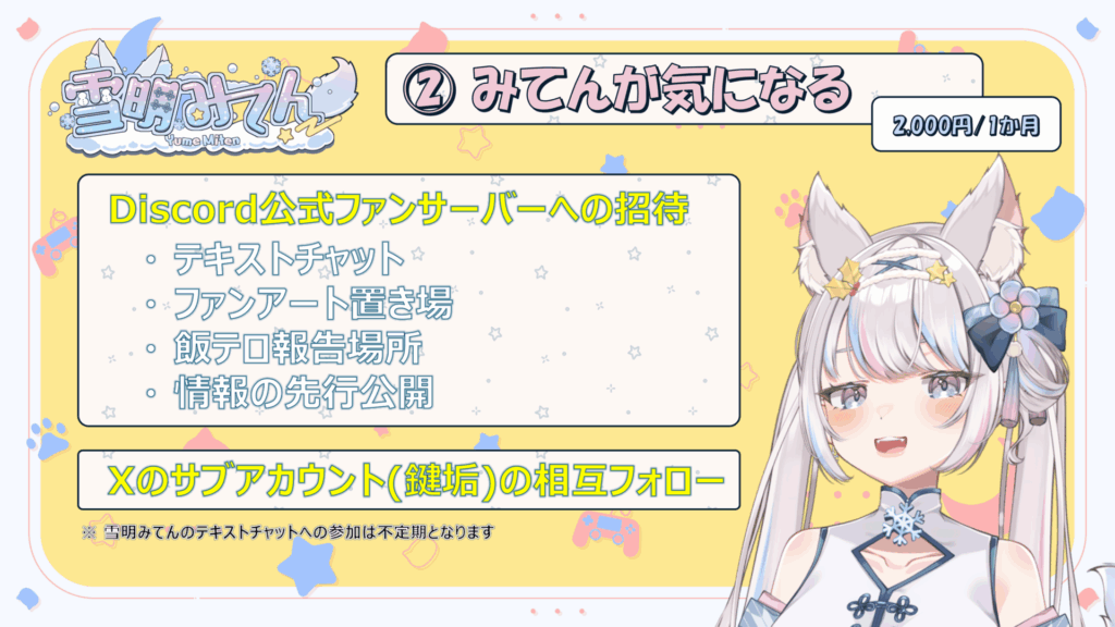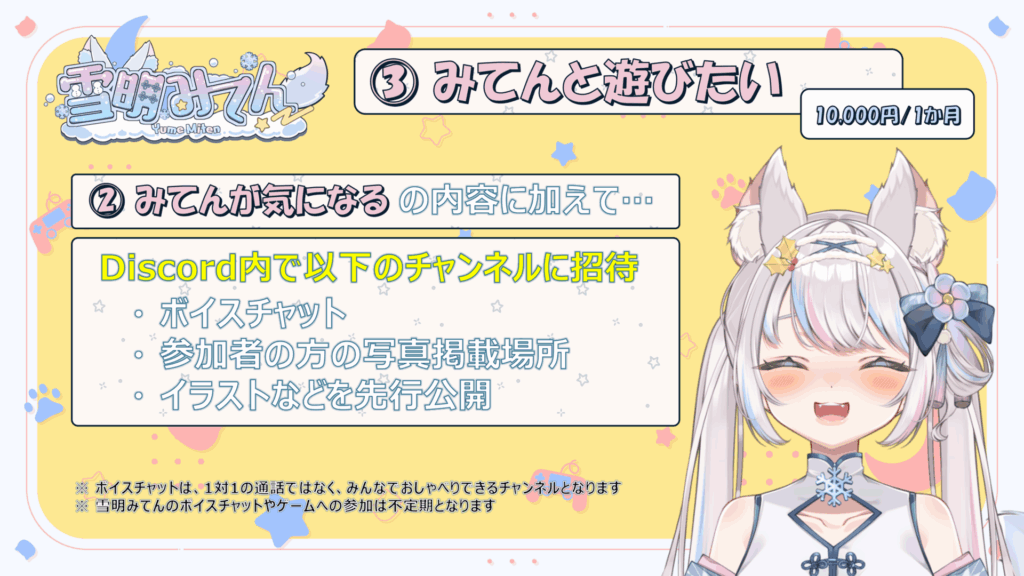 加入特典の公式ファンサーバーなどにあんまり参加できないかも…